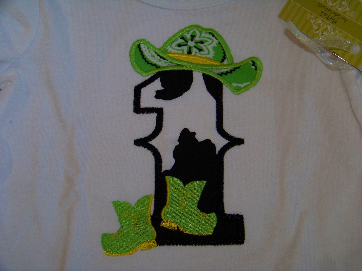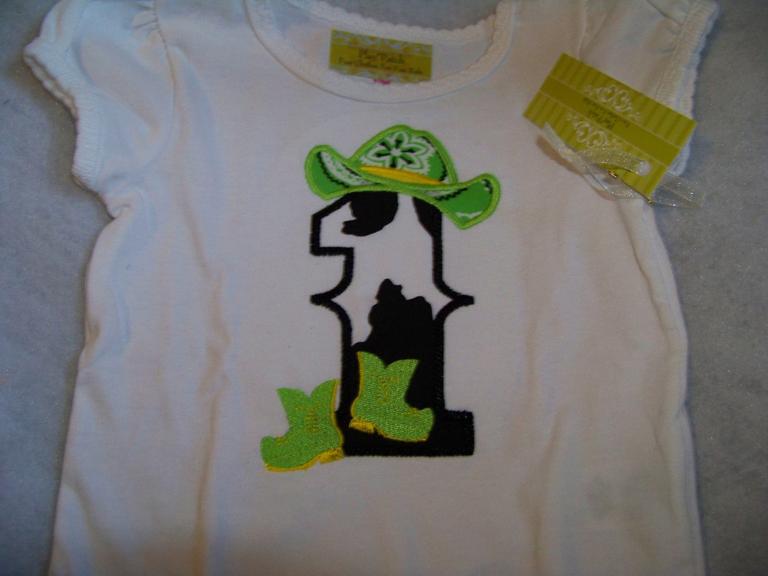 How cute would this set be on your little birthday girl on her first birthday. The set is perfect for the little anilmal lover and featuring cow print. The set is a two piece set that includes a shirt and ruffle bottom and is sized 12 months.